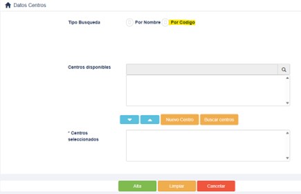 - Una vez seleccionado el centro o centros pulse el botón “ALTA”