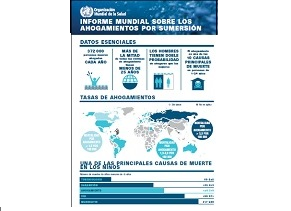 Destaca que 372.000 personas se ahogan en todo el mundo cada año, siendo una de las diez principales causas de mortalidad de los niños de todas las regiones del mundo. El informe muestra la evidencia de una serie de estrategias eficaces para prevenirlos y hace una serie de recomendaciones sobre medidas concretas que deben de tomar los gobiernos nacionales y locales. Con el lanzamiento de este informe, la OMS tiene como objetivo sensibilizar sobre este tema e impulsar la acciones, y pone en relieve cómo la colaboración intersectorial puede salvar vidas.