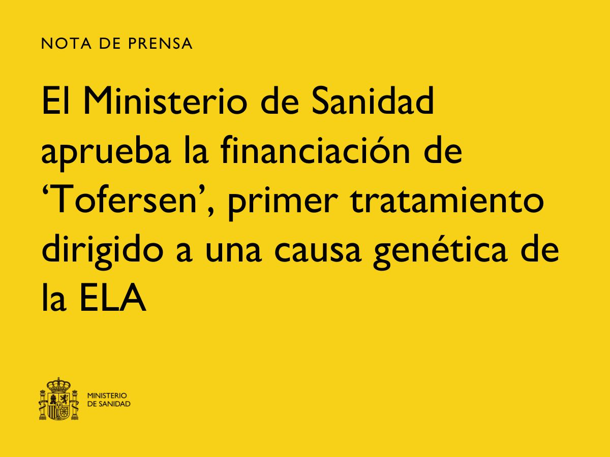 22/05/2025 - El Ministerio de Sanidad aprueba la financiación de "Tofersen", primer tratamiento dirigido a una causa genética de la ELA