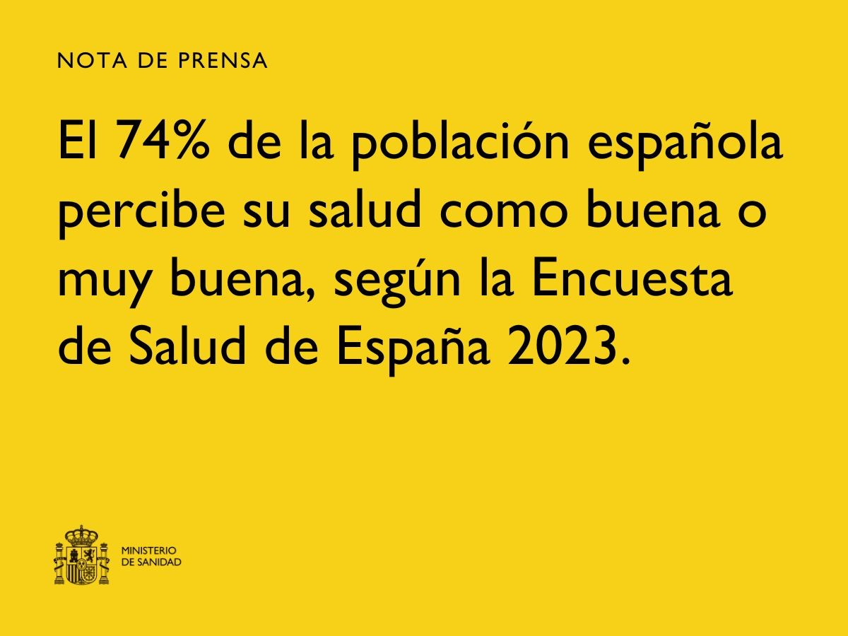 27/05/2025 - El 74% de la población española percibe su salud como buena o muy buena, según la Encuesta de Salud de España 2023